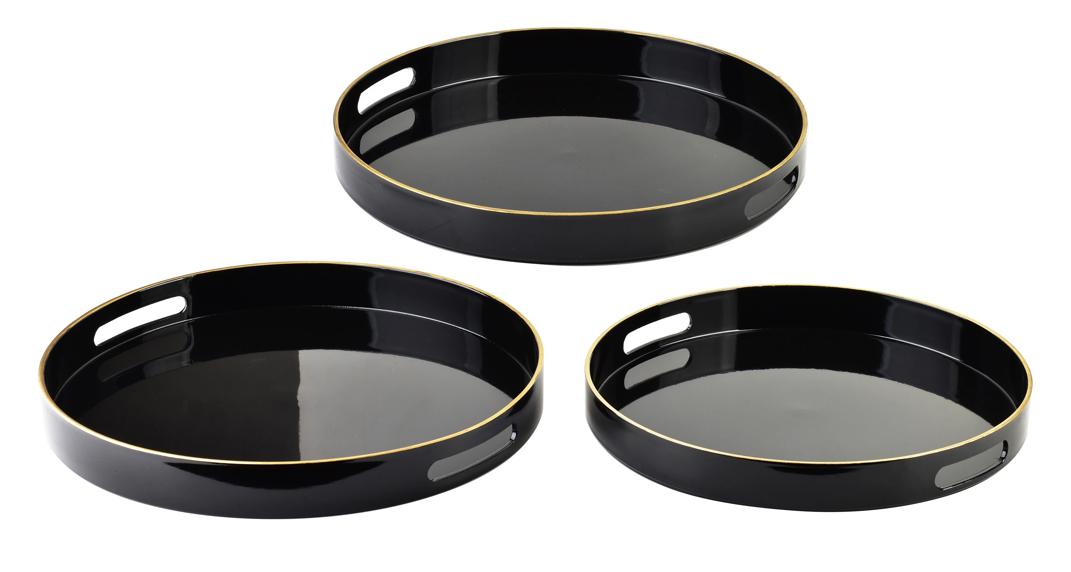 BLANCHE BLACK Komplet 3 Tac Dekoracyjnych okrągłe 38x38x4cm/35x35x4cm/33x33x3,5cm