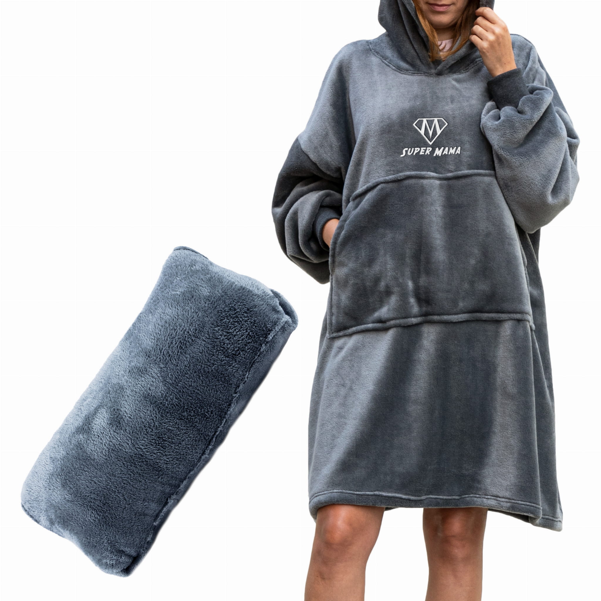 Bluzair SUPER MAMA - Bluza koc - Szary - prezent na dzień mamy