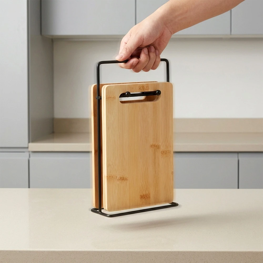 ✅ Wykonane z drewna bambusowego - Deski wykonane z najwyższej jakości drewna bambusowego. Stojak wykonany z metalu w kolorze czarnym, jest wytrzymały i stabilny.