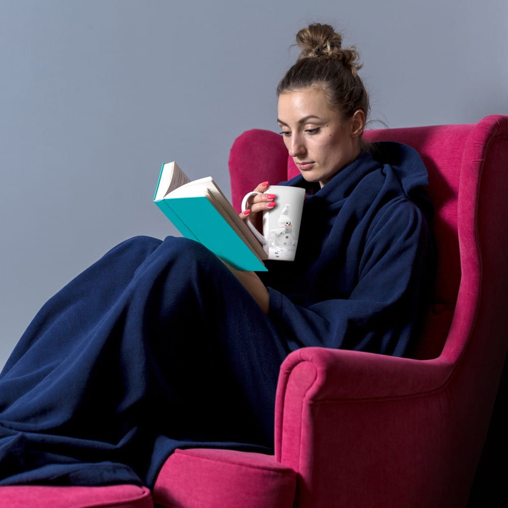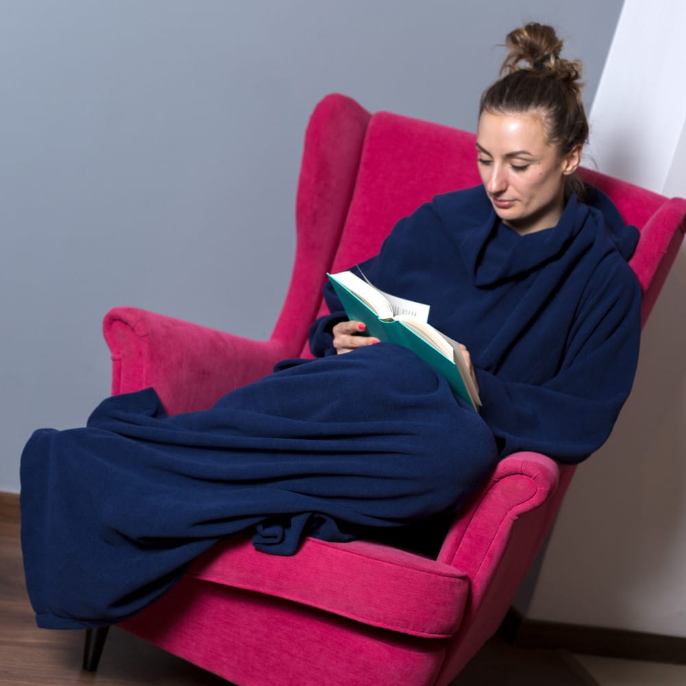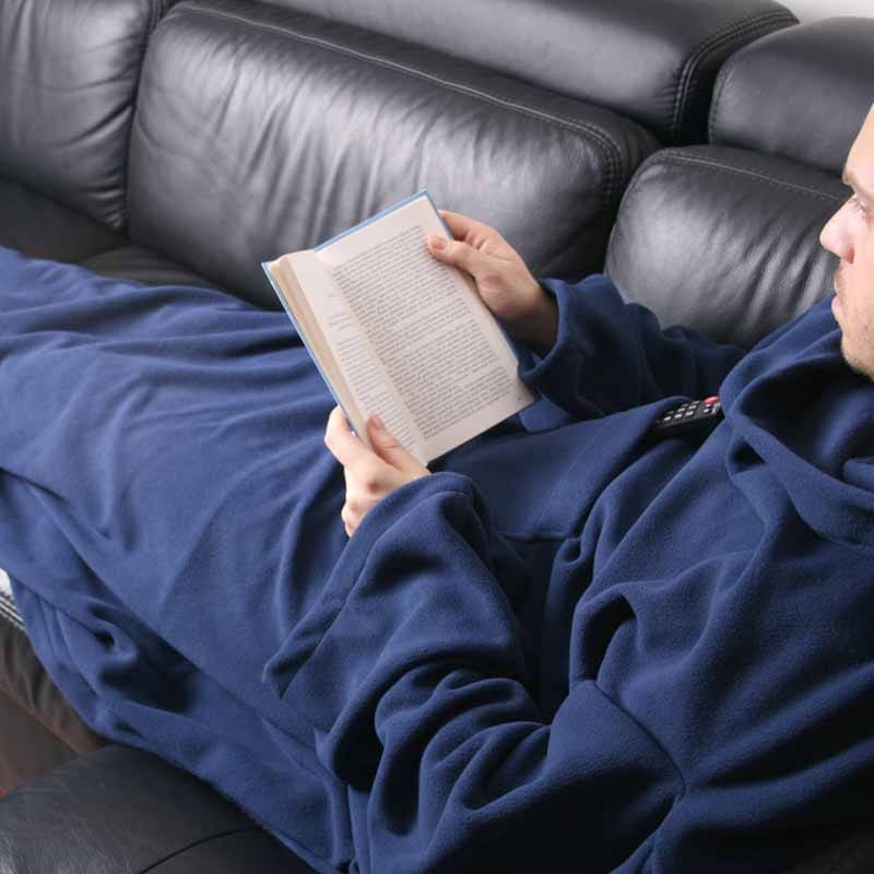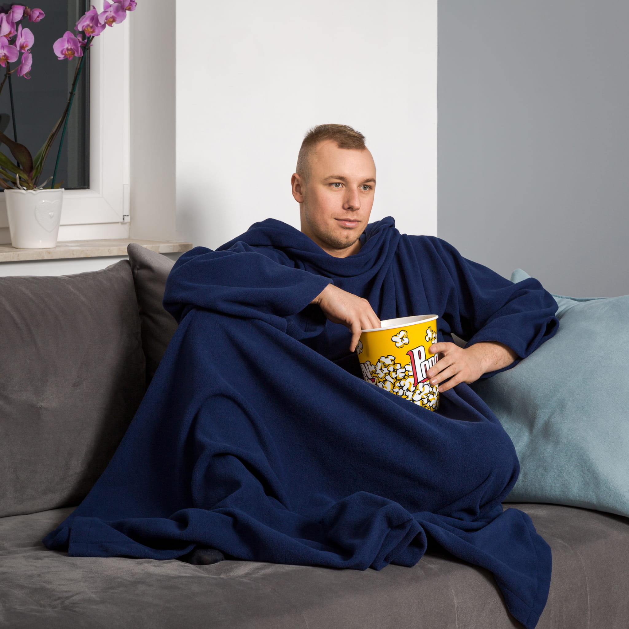 Koc z rękawami i wygodną kieszenią Chłodne jesienno-zimowe wieczory spędzane w domu mogą być bardzo przyjemne pod warunkiem, że zaopatrzysz się w miękki i cieplutki kocyko-szlafrok! Jest to połączenie ciepłego koca z miękkim szlafrokiem, które sprawi, że nie zechcesz ruszyć się z kanapy przez cały wieczór! To wyjątkowe ubranie ma wygodną kieszeń, w której zmieści się pilot do telewizora i kilka innych przydatnych podczas wypoczynku drobiazgów. Do domu i na zewnątrz Nie miej żadnych wyrzutów sumienia – chwila błogiego lenistwa w przyjemnym cieple należy się każdemu! Kocyko-szlafrok sprawdzi się świetnie podczas długich podróży czy na kempingu. Będzie także prawdziwym wybawieniem dla osób cierpiących na przeziębienie lub grypę. Polecamy jako prezent dla osób ciepłolubnych w każdym wieku.