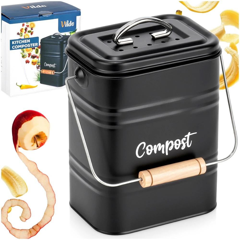 Kompostownik kuchenny z filtrem węglowym metalowy czarny 5 l