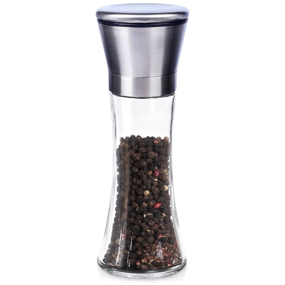 Ręczny młynek idealnych do pieprzu lub soli. Niezbędny w każdej kuchni. Młynek pozwoli odpowiednio zmielić sól lub pieprz, a także inne przyprawy. Mielenie bezpośrednio przed podaniem pozwala na zachowanie świeżości oraz uwolnienie aromatu przypraw. Łatwy w czyszczeniu i użytkowaniu. Młynek, dzięki przezroczystej formie dobrze komponuje się z pozostałą zastawą. Świetnie sprawdzi się w lokalach gastronomicznych. Ręczny młynek jest zawsze sprawdzonym pomysłem na prezent np. z okazji parapetówki. Całkowicie bezpieczny dla zdrowia i neutralny dla żywności. Wyprodukowano zgodnie z europejskimi standardami.