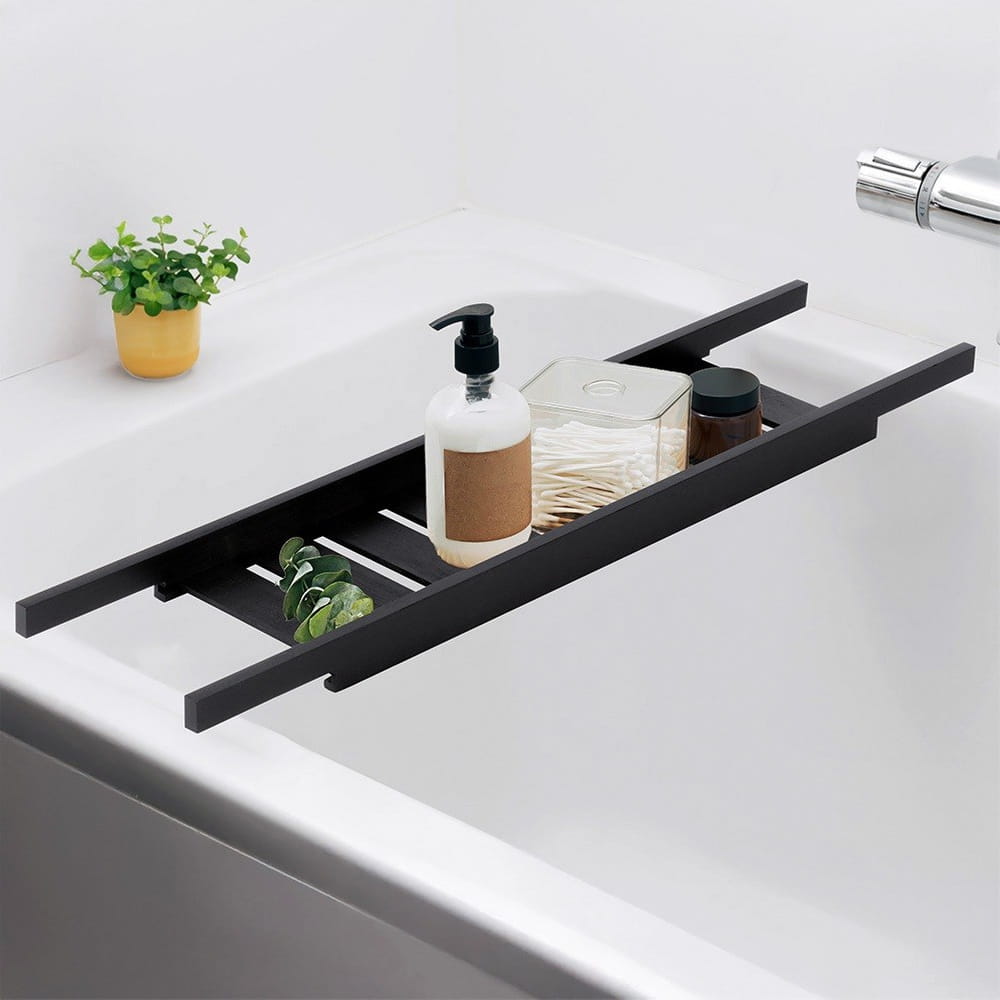 Półka łazienkowa na wannę bambusowa czarna 68 cm
