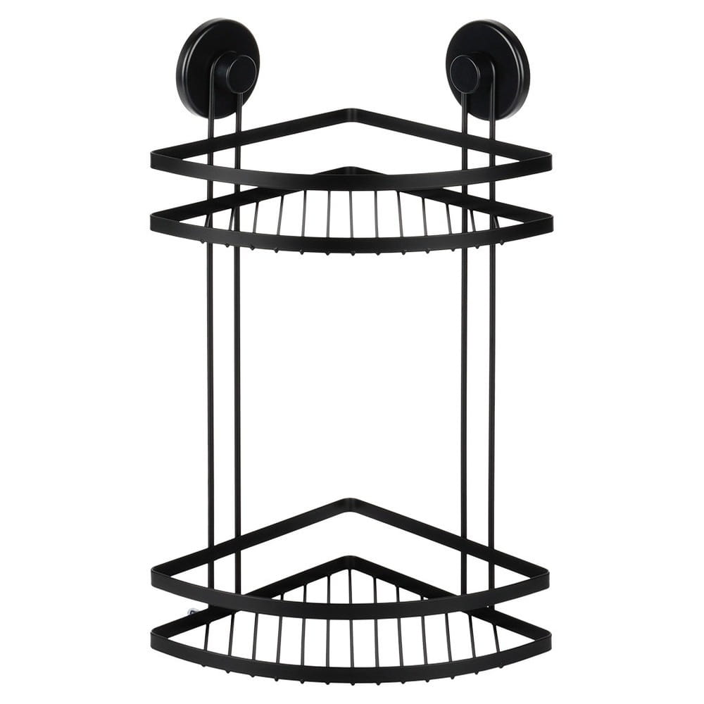Półka pod prysznic metalowa czarna na przyssawki narożna 2-poziomowa 24x18x38 cm