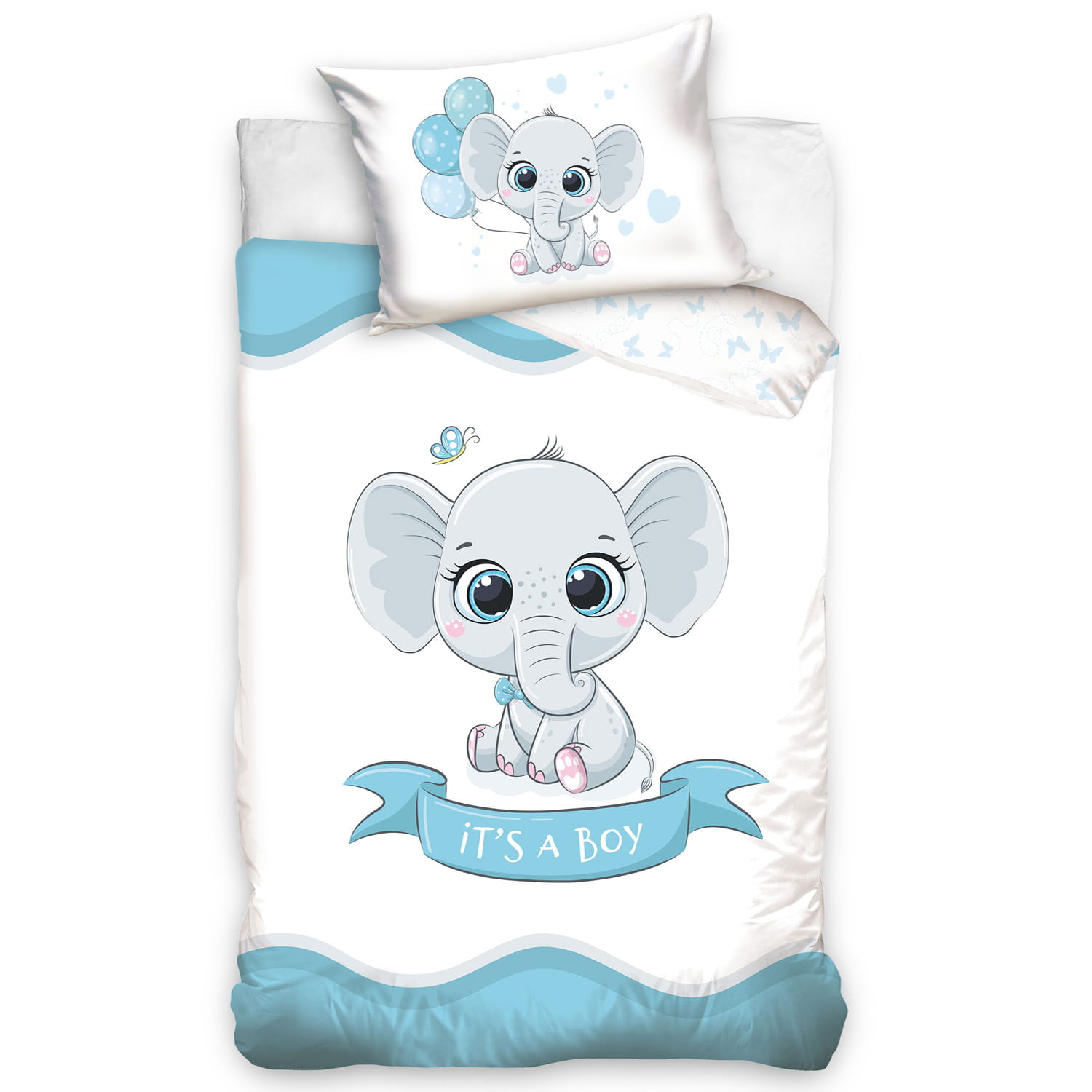 Pościel bawełna 100x135 + 40x60 Słonik niebieski