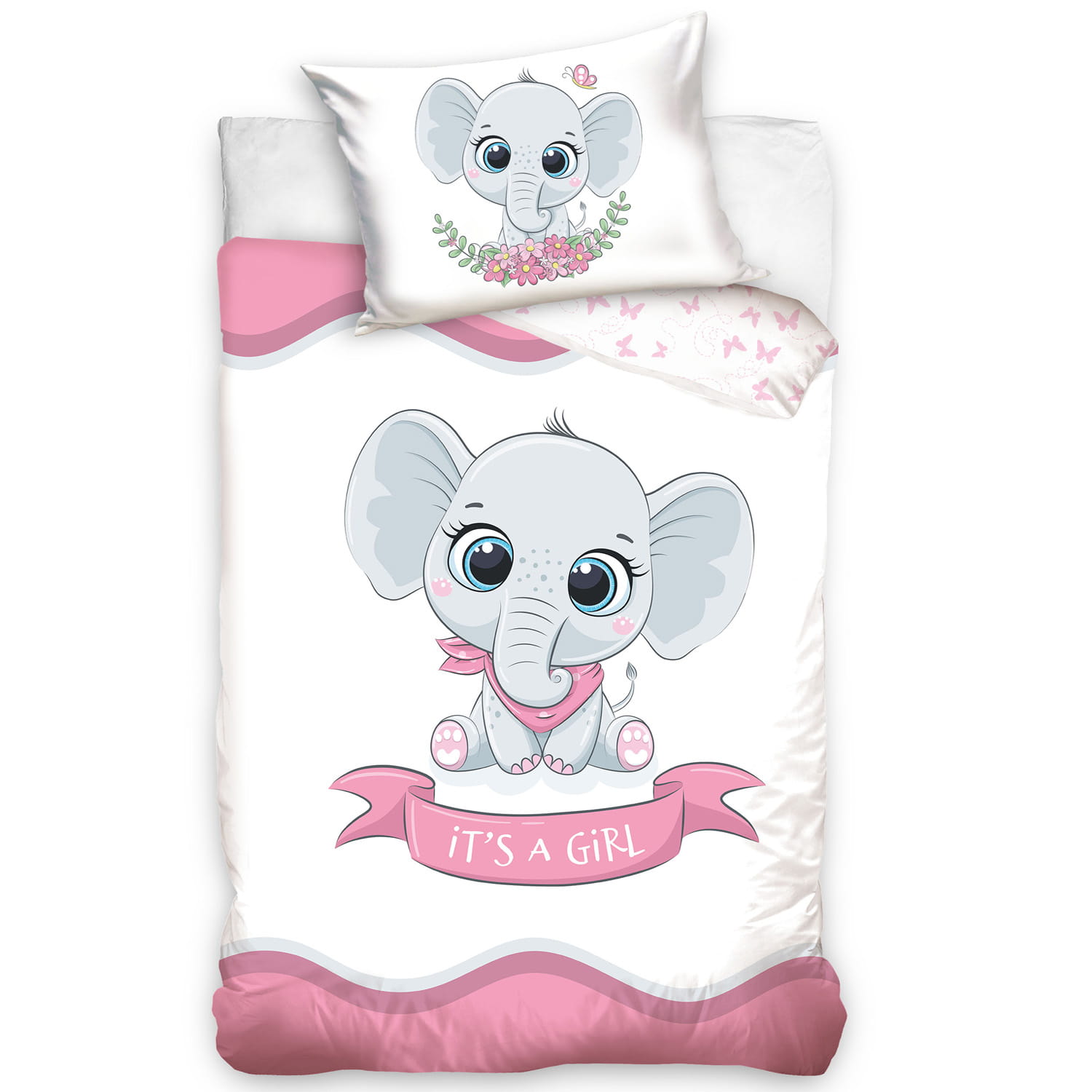 Pościel bawełna 100x135 + 40x60 Słonik różowy
