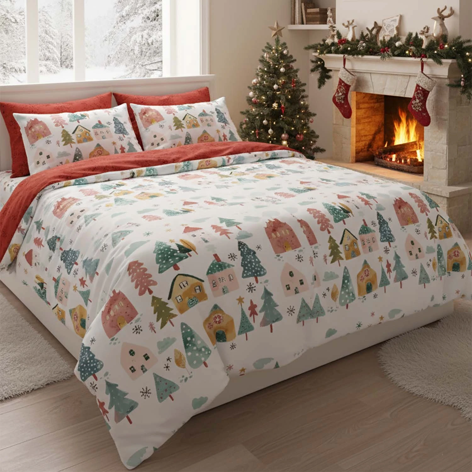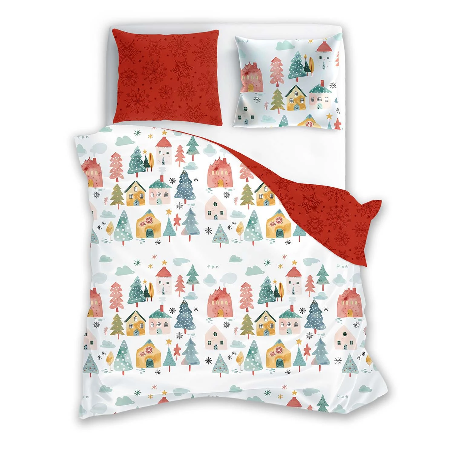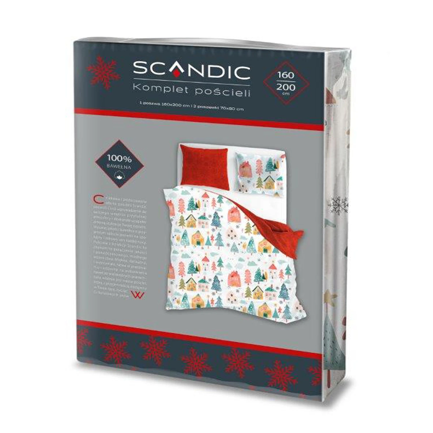 Pościel bawełniana 160x200 + 2x70x80 świąteczna wzór 080