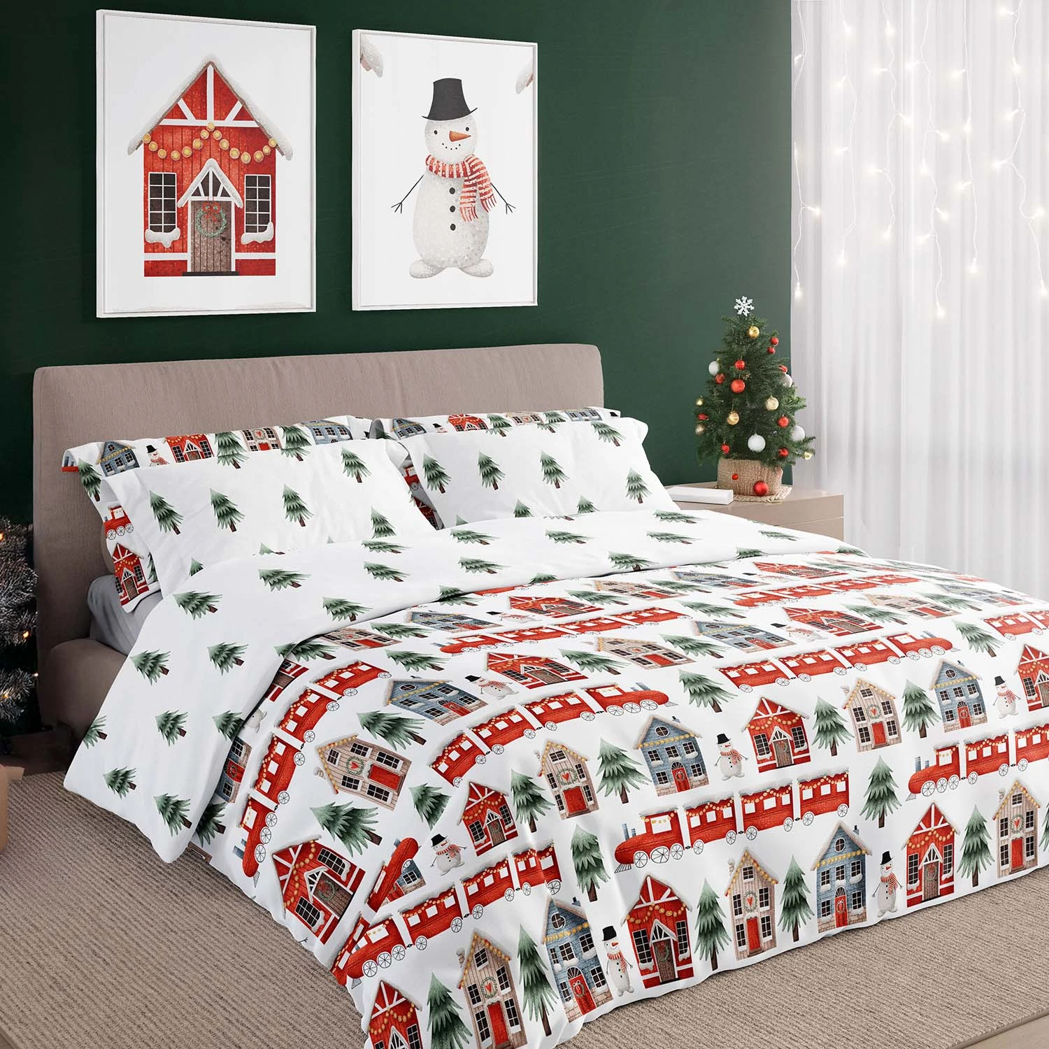 Pościel bawełniana 220x200 + 2x70x80 świąteczna wzór 075