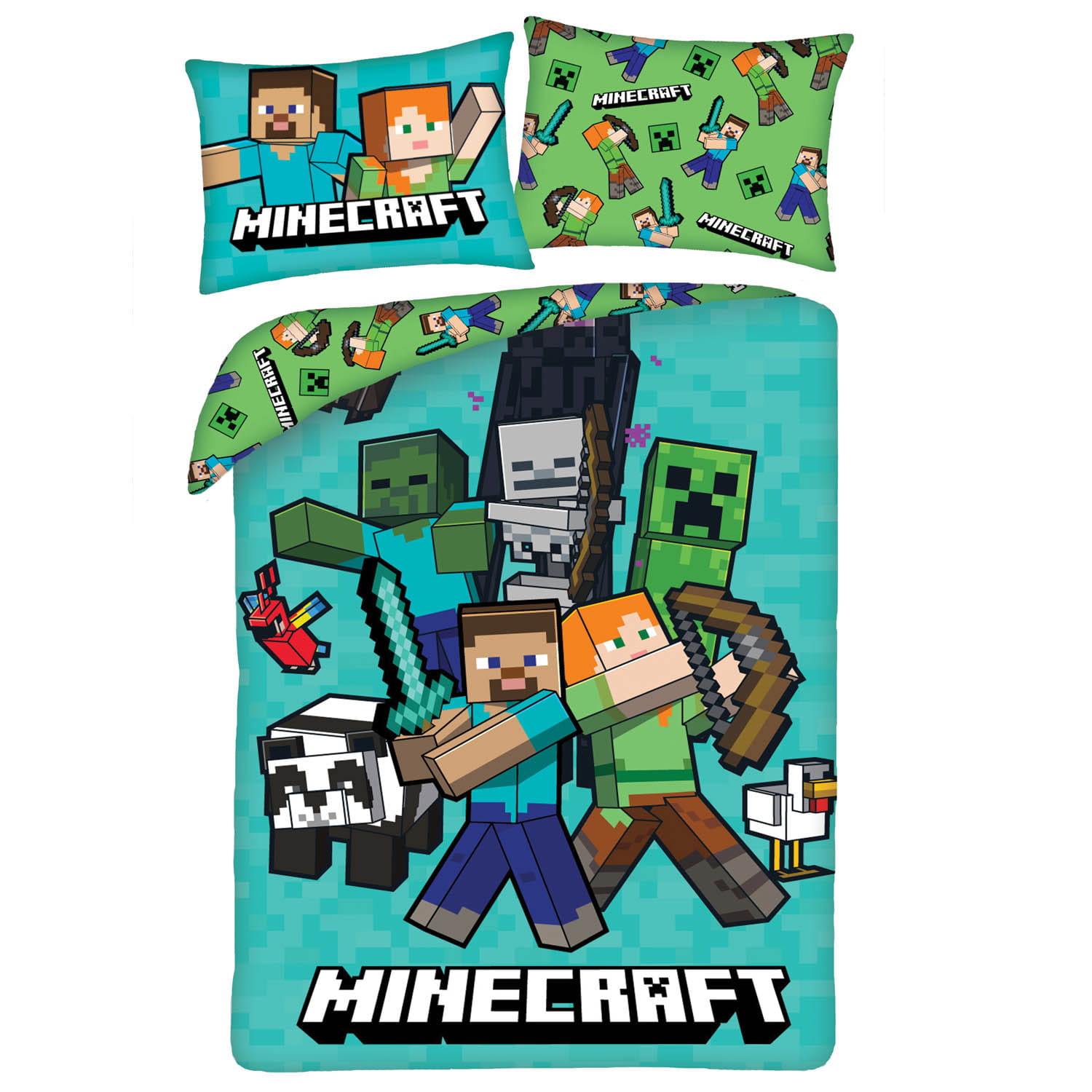 Pościel mikrofibra 140x200+1p70x90 Minecraft turkus