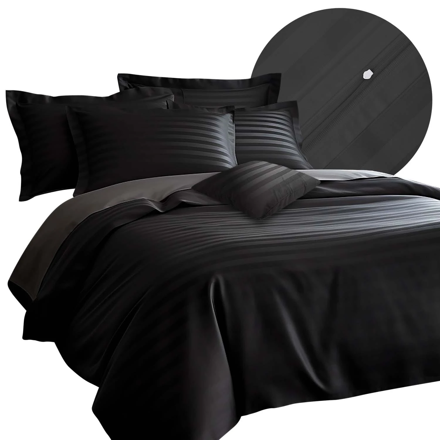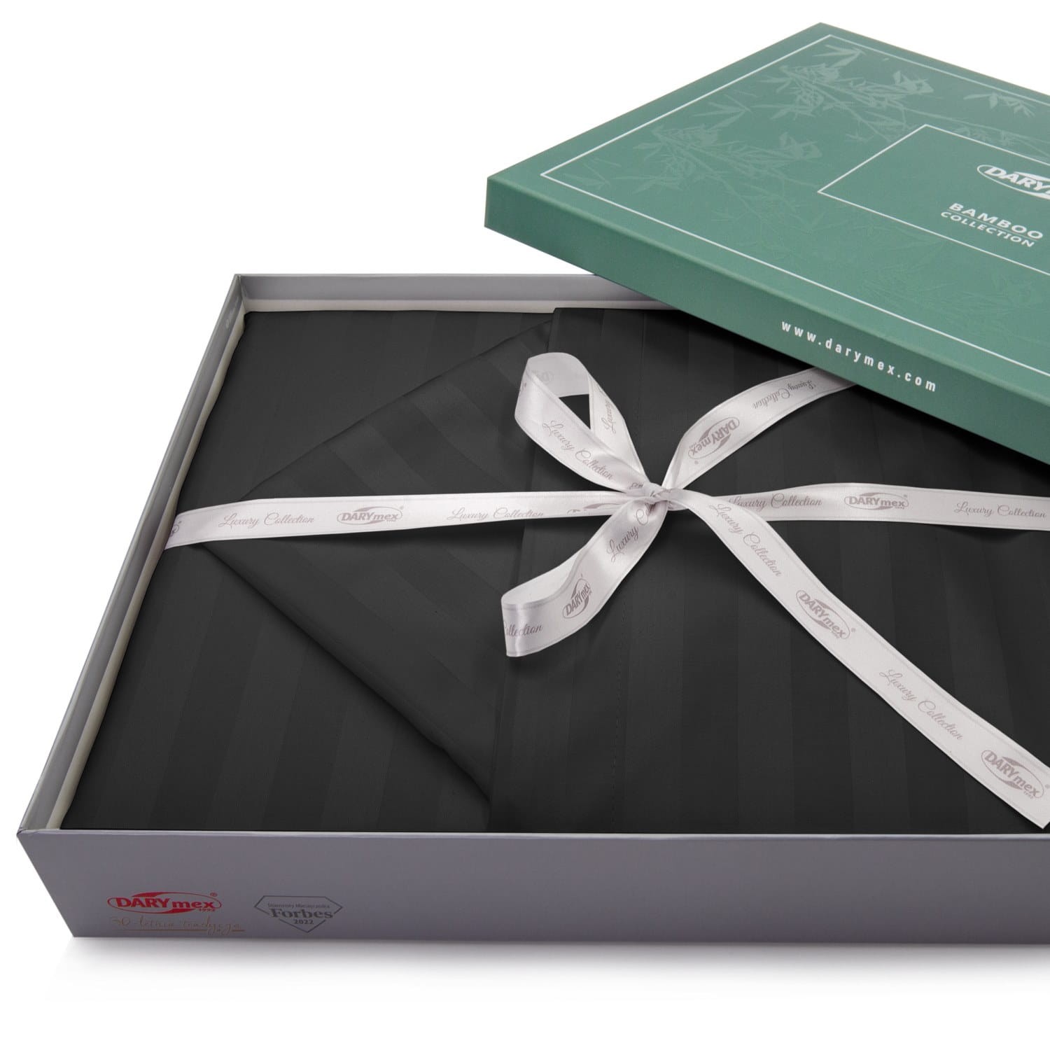 Pościel satyna bambusowo-bawełniana (P) STRIPE BLACK/220x200 +2x70x80 z listwą +4x40x40 BAMBOO