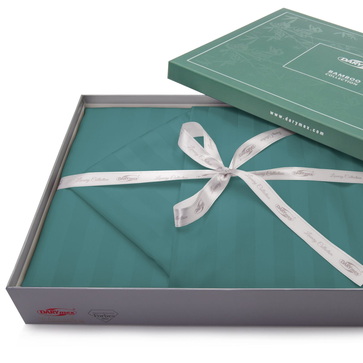 Pościel satyna bambusowo-bawełniana (P) STRIPE SEA TURQUOISE/140x200 +1x70x80 z listwą +2x40x40 BAMBOO