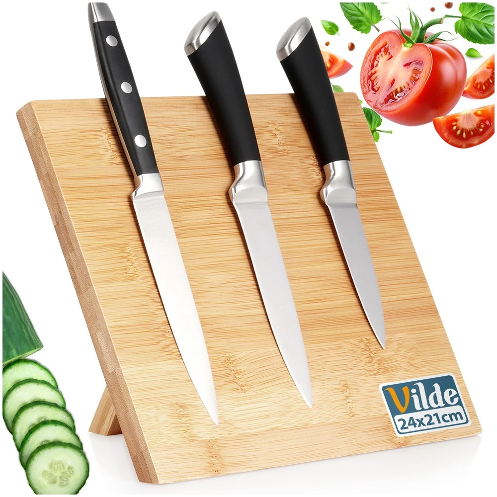 Magnetyczny stojak na noże kuchenne. Niezwykle efektowny, będzie ozdobą każdej kuchni, jednocześnie umożliwiając odpowiednie przechowywanie noży oraz akcesoriów kuchennych. Posiada nowoczesny design, dzięki czemu będzie pasował do kuchni w stylu nowoczesnym, ale również w stylu klasycznym. Oryginalny produkt marki Vilde. Wyprodukowano zgodnie z europejskimi standardami.