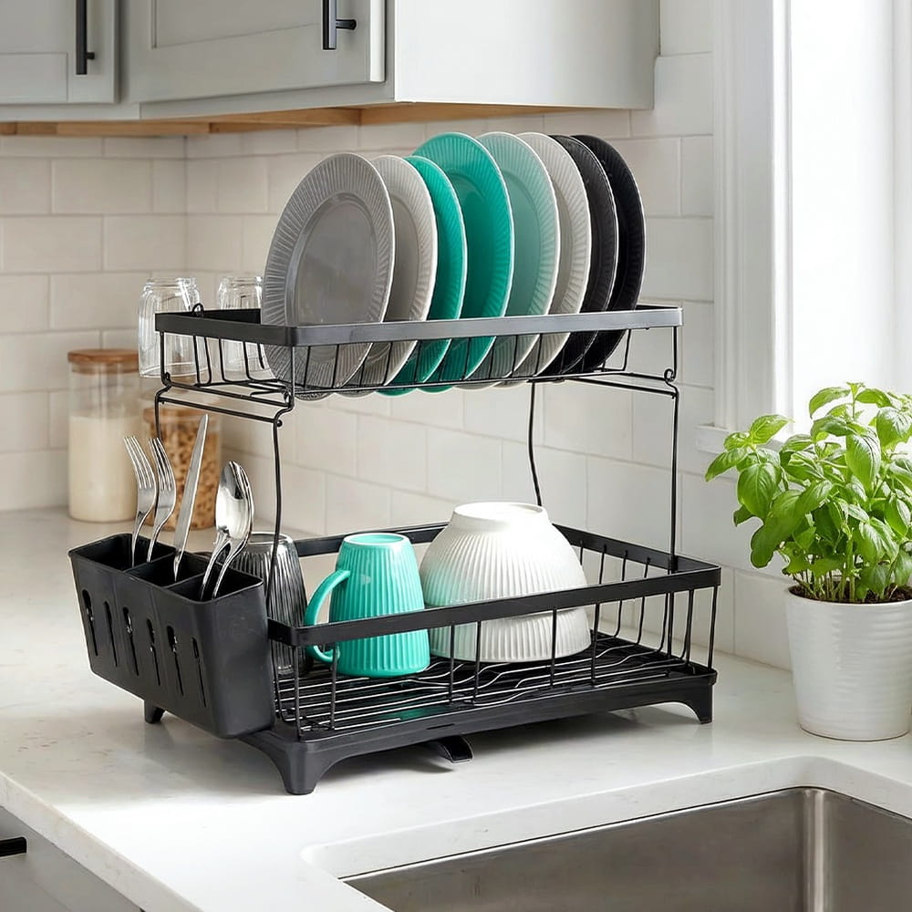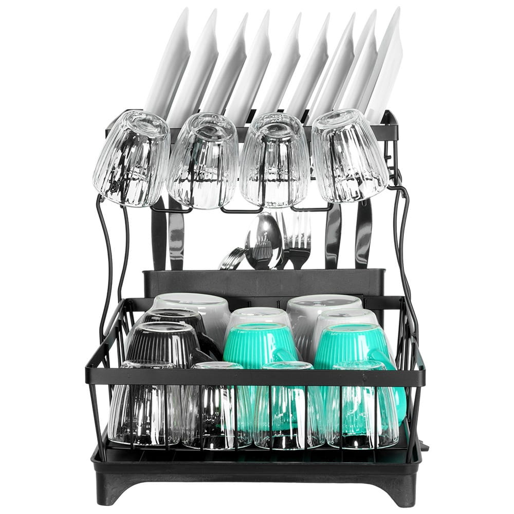 ✅ Duża pojemność - Suszarka do naczyń posiada dwa poziomy, co skraca czas suszenia i zwiększa pojemność suszarki. W górnej części posiada miejsce na 9 talerzy, natomiast w dolnej części dostępne jest miejsce na kilka kubków, misek czy szklanek.