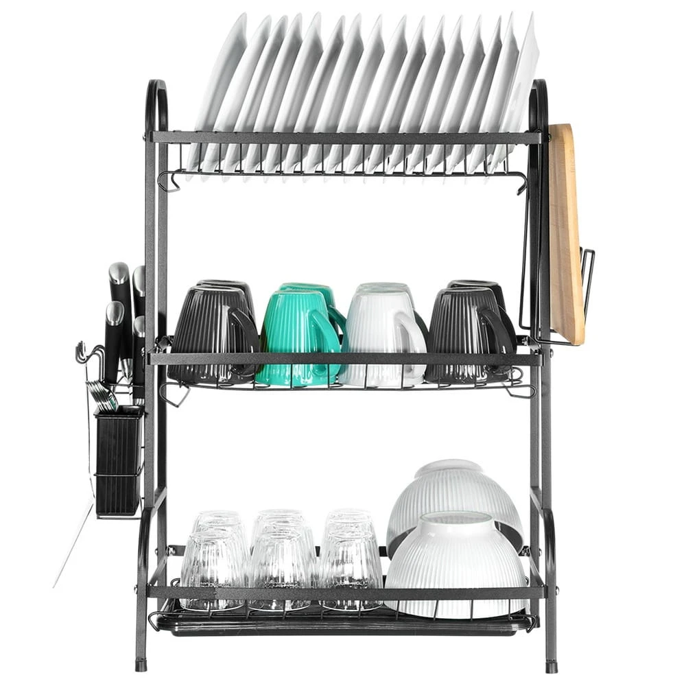Suszarka na naczynia metalowa czarna 3-poziomowa 54,5x24,5x60 cm