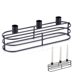 Świecznik na trzy długie świece. Wykonany z metalu w kolorze czarnym. Świetnie sprawdzi się jako świecznik adwentowy. Utrzymany w industrialnym stylu typu loft.