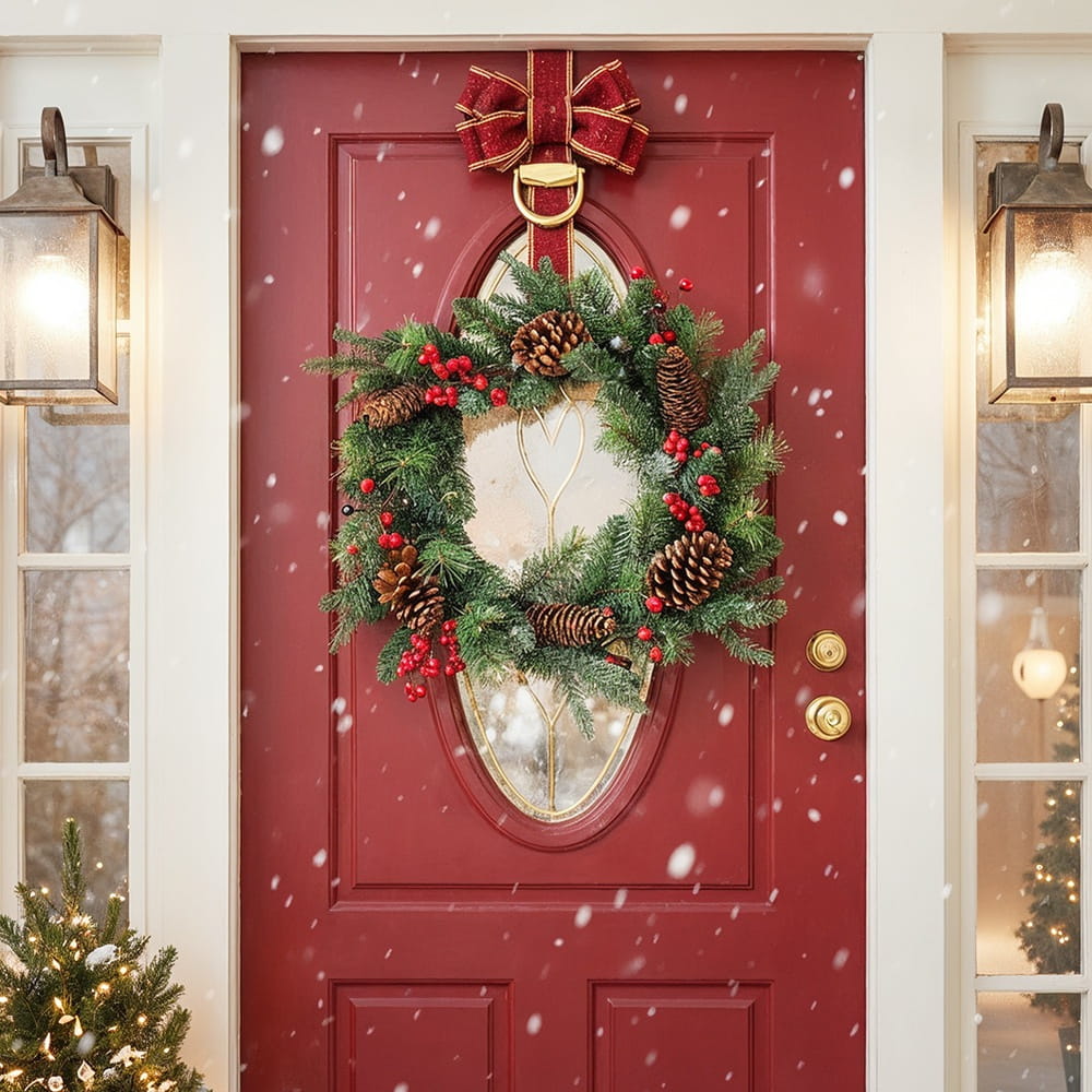 ✅ Trwałe i realistyczne wykonanie - Wianek wykonany jest z wysokiej jakości tworzywa, dzięki czemu jego gałązki wyglądają realistycznie i są trwałe. Materiał ten zapewnia, że wianek zachowa swój piękny wygląd przez wiele świątecznych sezonów.