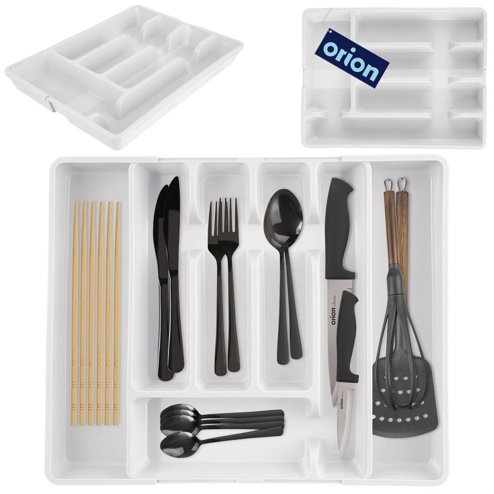 Regulowany organizer na sztućce jest przydatny w każdej kuchni. Umożliwia przechowywanie różnych akcesoriów kuchennych, takich jak sztućce, noże czy inne drobne przedmioty, w sposób uporządkowany i zorganizowany. Taca do szuflady pozwoli odpowiednio zagospodarować przestrzeń oraz utrzymać porządek wewnątrz szuflady. Łatwy w czyszczeniu i wygodny w użytkowaniu. Wkład jest regulowany, co umożliwia łatwe dopasowanie do każdej szuflady. Oryginalny produkt czeskiej marki Orion. Wyprodukowano zgodnie z europejskimi standardami.