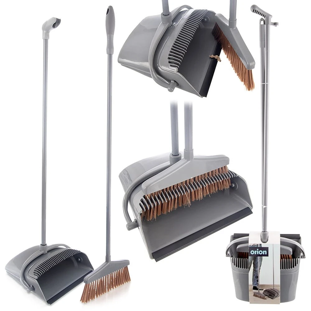Zestaw do sprzątania - miotła wraz z zamykaną szufelką z długim kijem. Dzięki niemu wygodnie i bez zbędnego schylania się zamieciemy kurz i śmieci z podłogi.